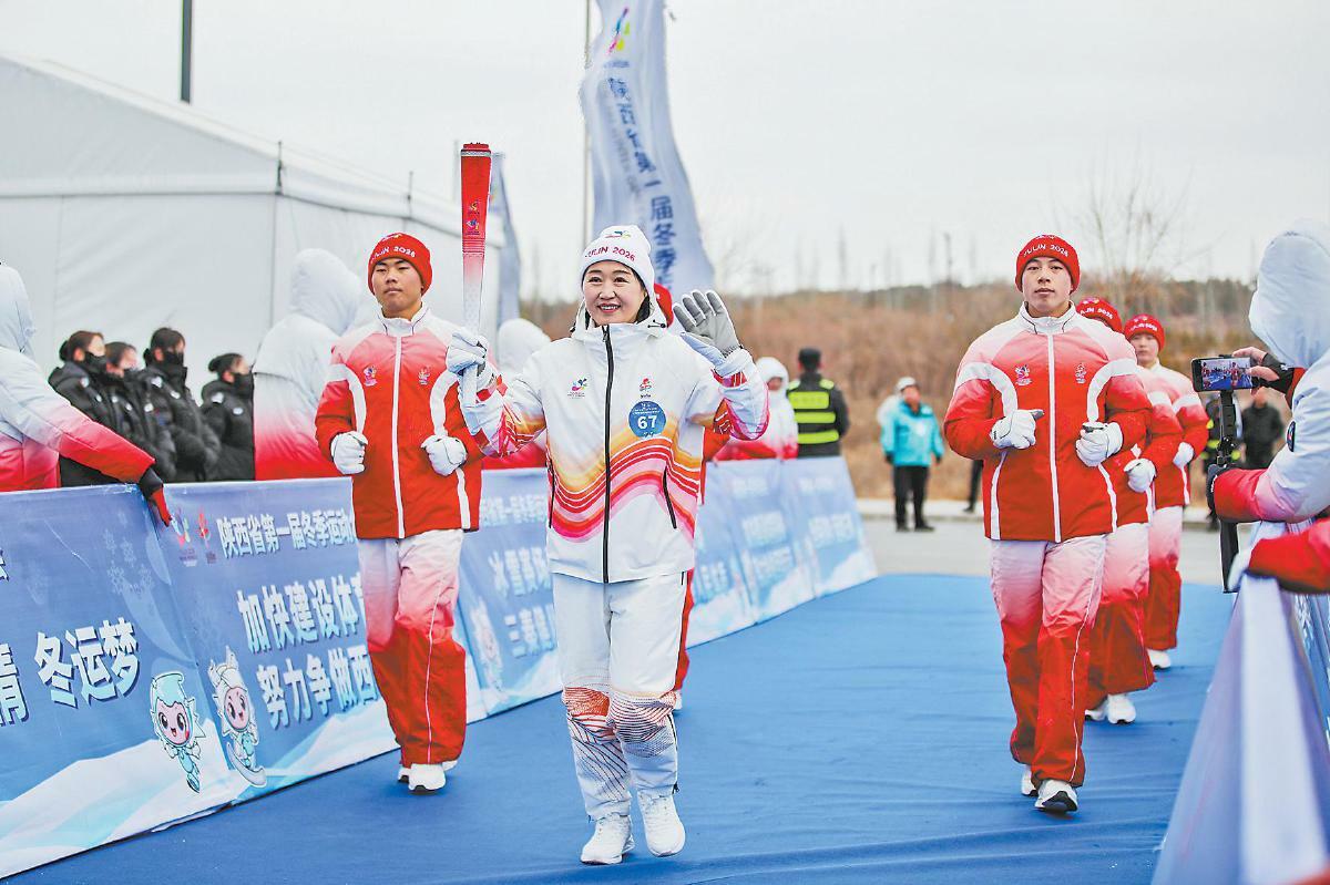 1月18日上午,陕西省第一届冬季运动会火炬传递在榆林科创新城站举行。
