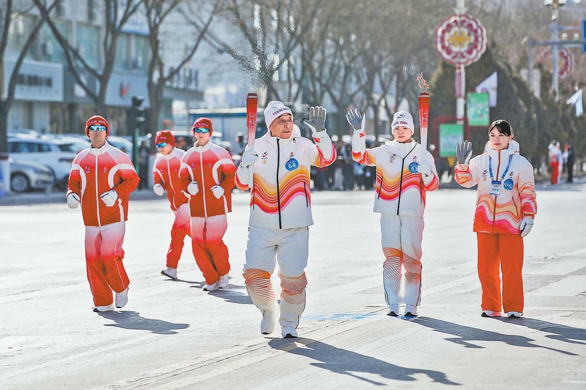 450名火炬手来自各行各业,他们中间有“人民医护工作者”国家荣誉称号获得者路生梅,有“七一勋章”获得者石光银,也有全国“劳动模范”牛玉琴,这些身边鲜活榜样的参与,如同一支支火炬,照亮时代发展的新征程。火炬传递沿途上演的陕北大秧歌、绥米唢呐、太极拳展演、武术表演等,荟萃了榆林丰富的非遗项目和群众性体育活动,让火炬传递超越了体育赛事的范畴,成为展示城市人文底蕴和全民健身成果的平台。
