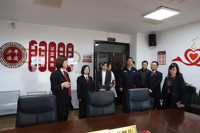 活动中,大家依次参观了该院诉讼服务中心、心理疏导室、家事调解室、家事法庭、刑事审判少年法庭等区域,全面了解了该院在保障妇女儿童合法权益、维护婚姻家庭和谐稳定等方面所做的工作,直观地感受了智慧法院“一站式”诉讼服务的便捷高效及该院在家事审判体系建设中取得的成果。随后,大家前往会议室,观看了《一路为“和”》家事审判工作纪录片,并开展了交流座谈会。