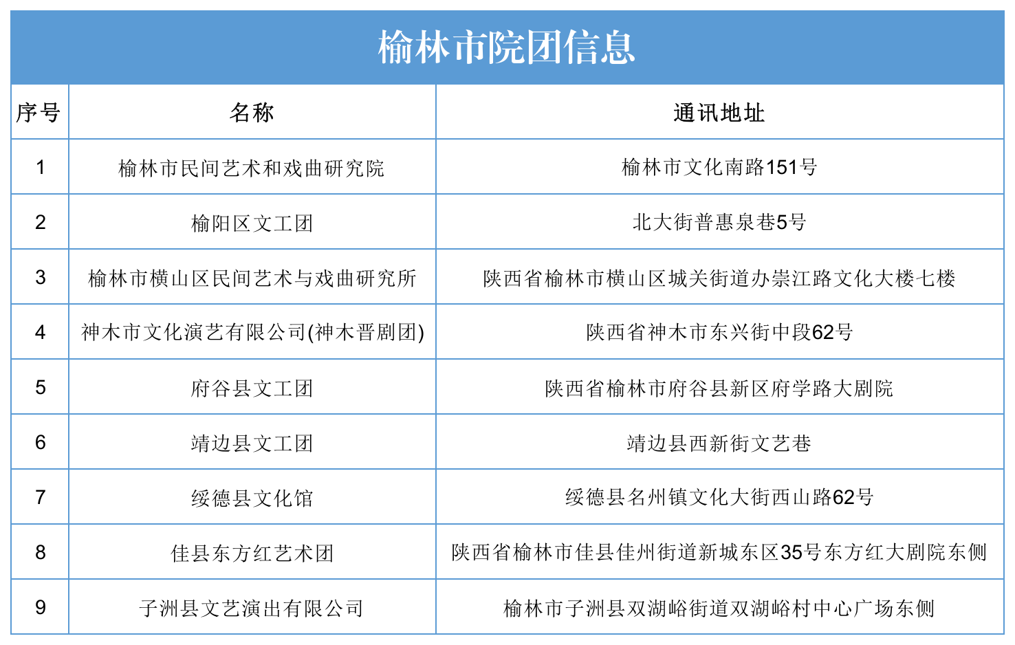 榆林市院团信息