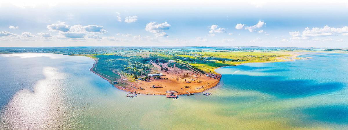 中国最大的沙漠淡水湖——红碱淖(无人机照片)。