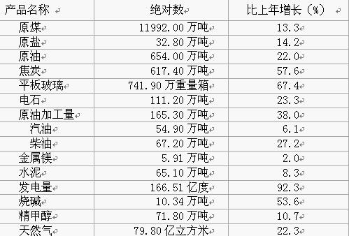 分行业看,规模以上工业企业中,煤炭开采和洗选业实现工业总产值225.81亿元,增长39.3%;石油和天然气开采业实现工业总产值293.69亿元,比上年增长32.8%;石油加工炼焦业实现工业总产值77.22亿元, 增长15.2%。电力热力的生产和供应业实现工业总产值78.55亿元,增长58.6%。以上行业产值占全市规模以上总产值的 83.0%。