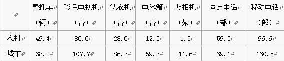 城镇与农村住户抽样调查主要消费品年末百户拥有量
