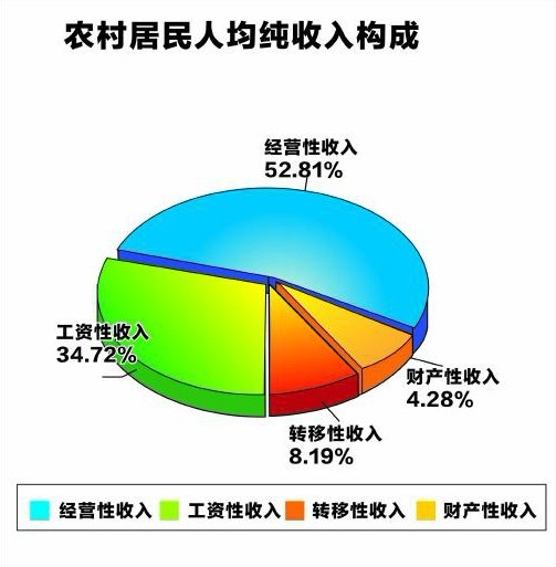 全市农民人均纯收入6520元,比上年增加1407元,增长27.5%。其中,工资性收入2264元,增长23.5%;家庭经营性收入3443元,增长26.7%;财产性收入279元,增长69.1%;转移性收入534元,增长34.2%。人均生活消费支出4975元,增长15.8%。农民人均住房面积29.9平方米,增长12.4%。