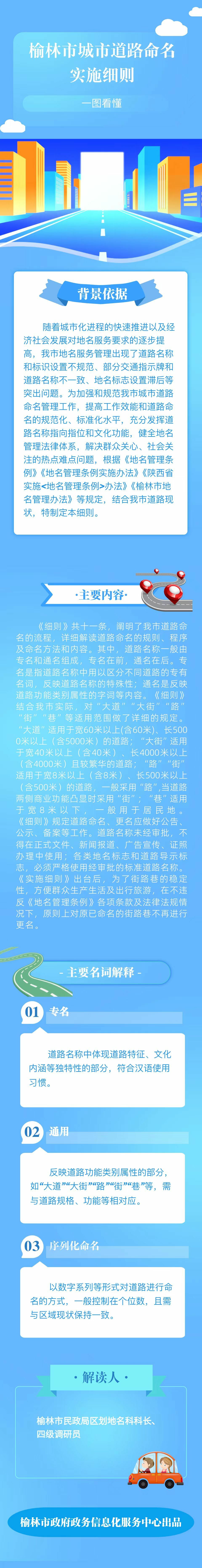 相关文档:榆林市人民政府办公室关于印发《榆林市城市道路命名实施细则》的通知