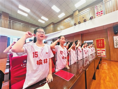 “为完成榆林2022年省运会任务,我们将坚决执行主教练的命令,以饱满的热情、昂扬的斗志,最刻苦的精神、最坚韧的毅力,决心做到:全力以赴、顽强拼搏、奋力夺冠,为榆林人民争光,捍卫榆林荣誉。榆林女足,加油!”7月7日,在榆林高新区第三小学校园内,回荡着阵阵铿锵有力的声音,这是全体榆林女足运动员在征战省十七运誓师大会上发出的坚定誓言。